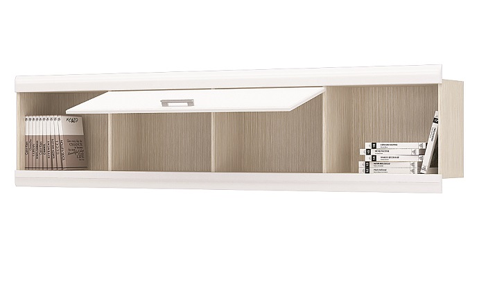 Полка Симба станет прекрасным и удобным элементом мебели в детскую комнату вашего ребёнка. Изделие будет отличным дополнением к спальному месту. Открытые полочки пригодятся для размещения интересных книг, любимых игрушек, ярких фотографий и оригинальных предметов декора. За подъемной дверцей ребенок сможет хранить более ценные для него вещи.