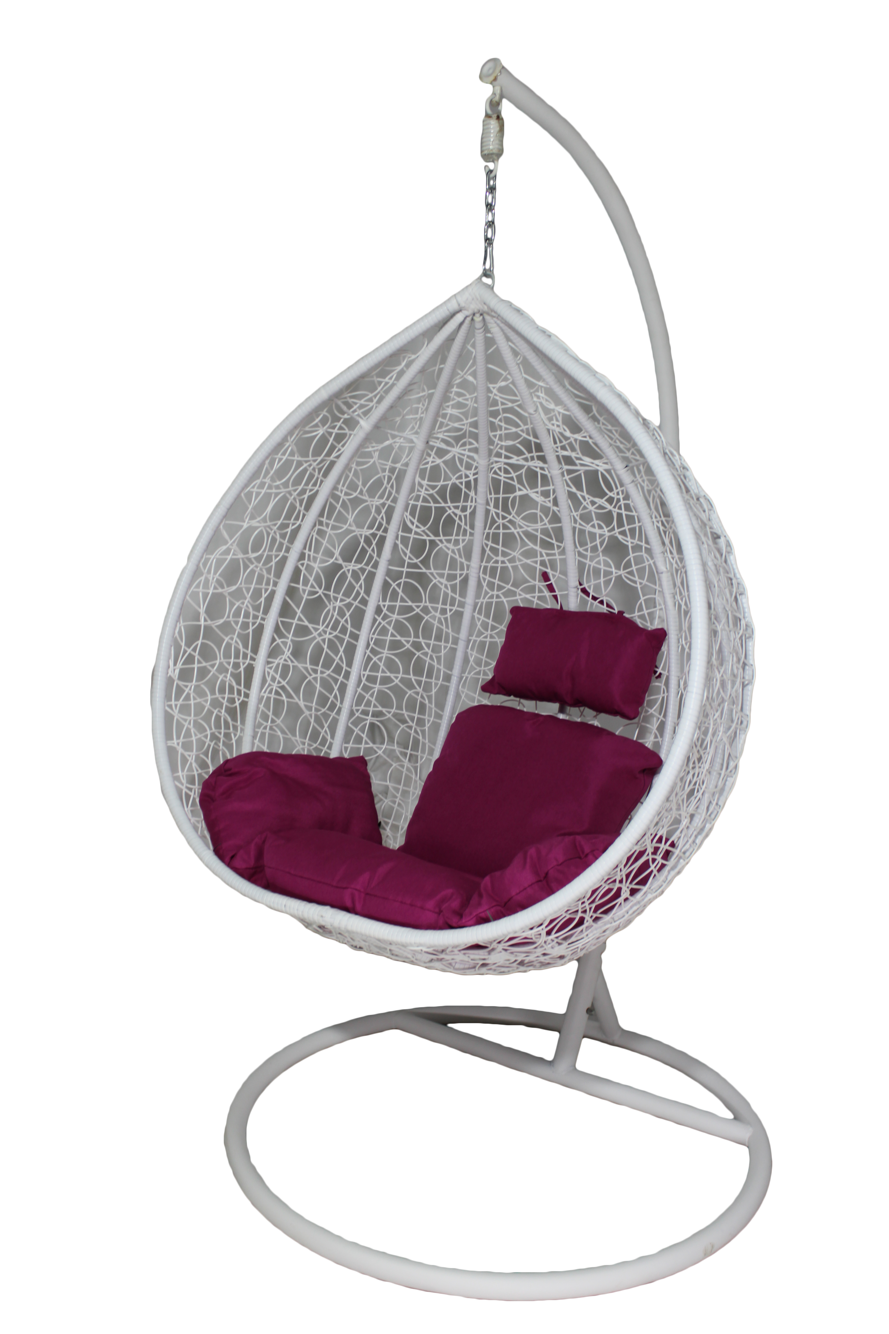 Кресло подвесное большое Кокон F-03 (Белый ротанг/Фуксия подушка)